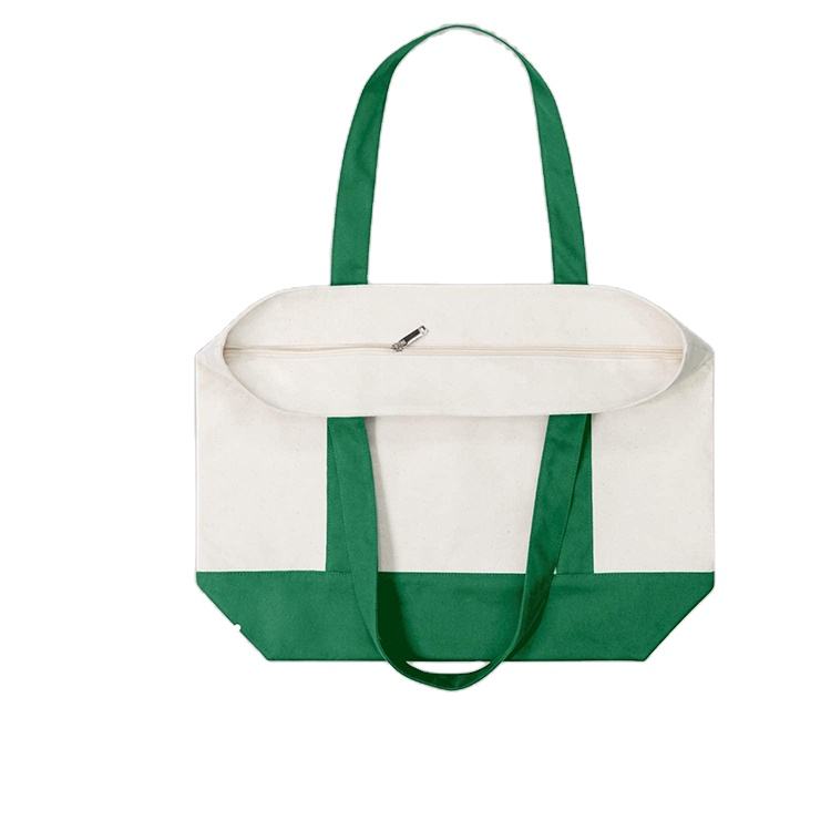 Custom Eco-friendly High Quality Large Capacity Canvas Tote Bag with Zipper Foldable Crossbody Shoulder Strap and Pocket