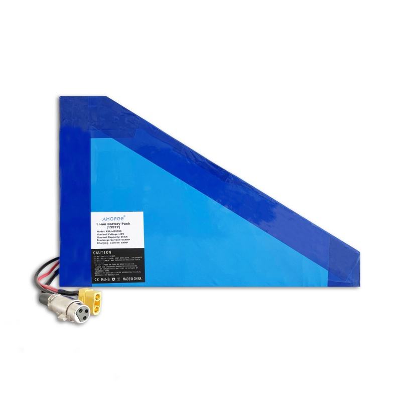 Custom Electric Bike Batteries 48V 35Ah 50AMP Lithium Li Ion Triangular Battery Pack With Charger and BMS
