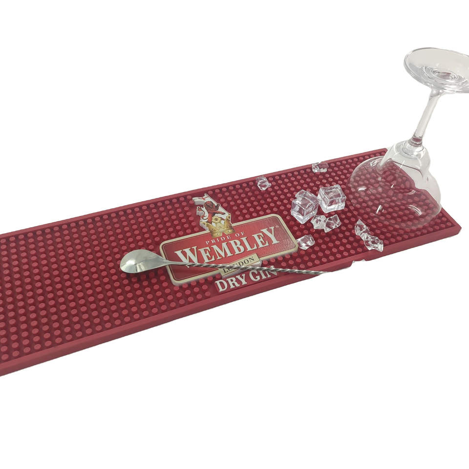 Custom Embossed Logo Long Strip PVC Bar Mat Non Slip Waterproof Spill Proof Dot Textured Bar Runner Pad For Bar Pub Mat