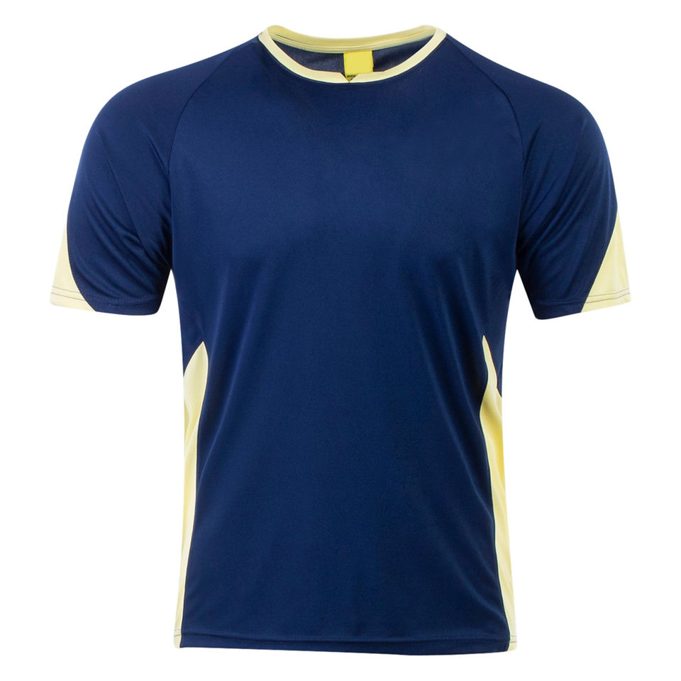 Custom Embroidered 100% Polyester Soccer Jersey Dark Blue with Yellow Strips Adult Sports Team Football Shirt
