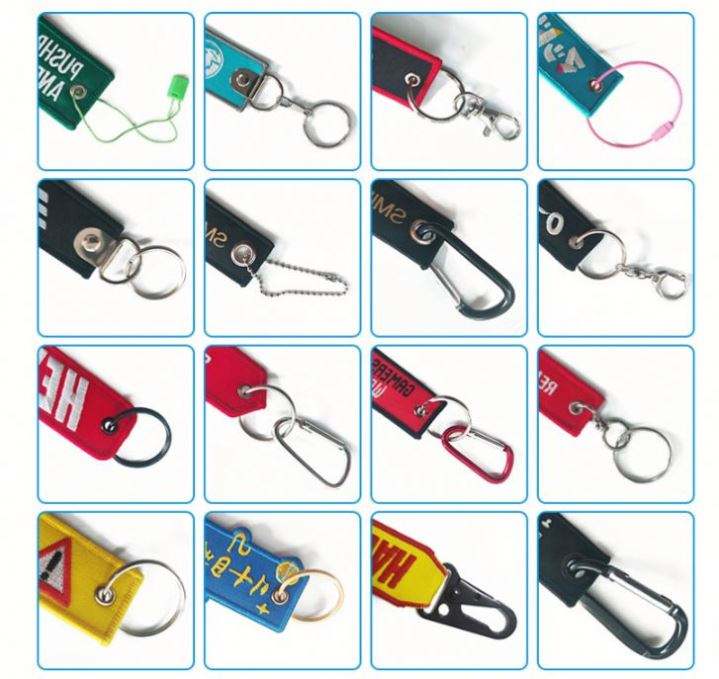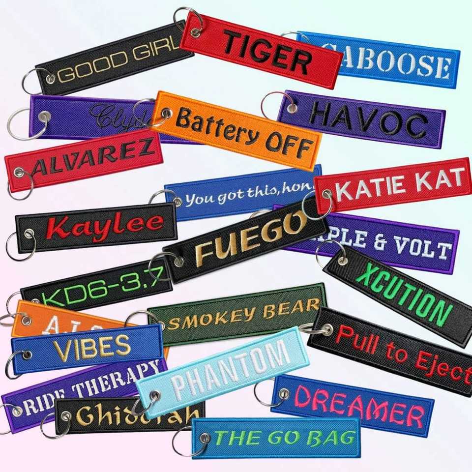 Custom Embroidered Key Chain Red Tag Flights Promotional Gifts Fabric Embroidery Keychains Woven Keychain
