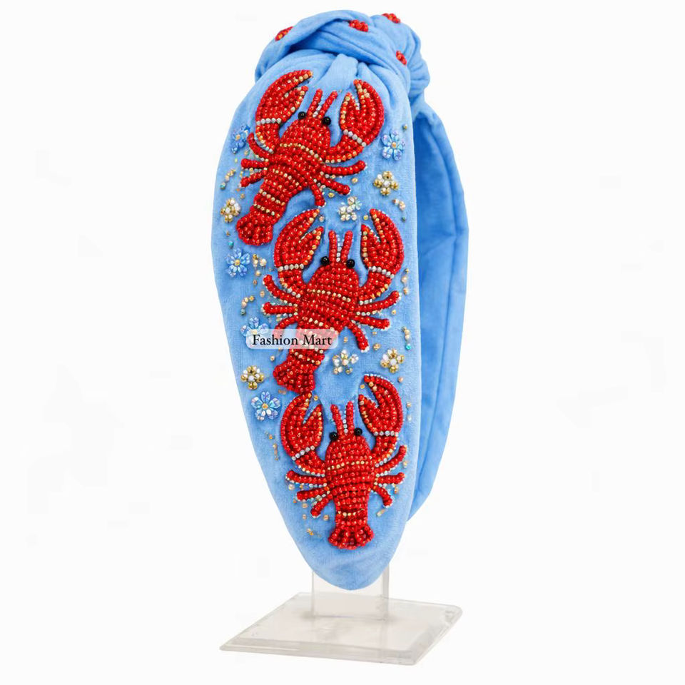 Custom Embroidered Lobster Knotted Headband Bulk Designer Hairbands For Boutiques