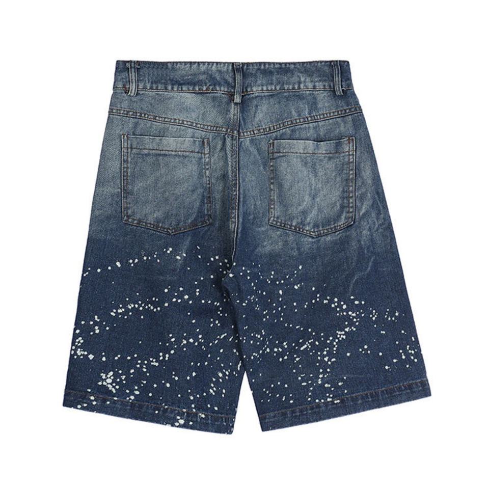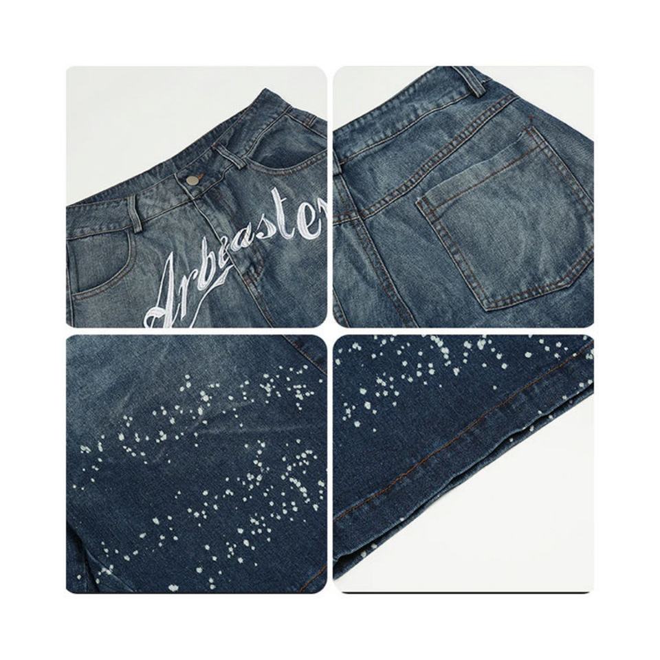 Custom Embroidered Logo Shorts Men High Quality Paint Denim Shorts Men Straight Loose Street Style Fashion Jeans Short Men
