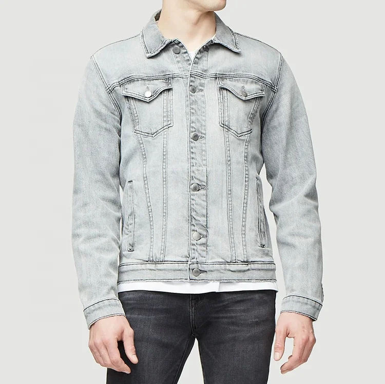 Custom Embroidered Logo Vintage Autumn Cotton Spandex Slim Fit Bomber Denim Coats Men Jean Jackets