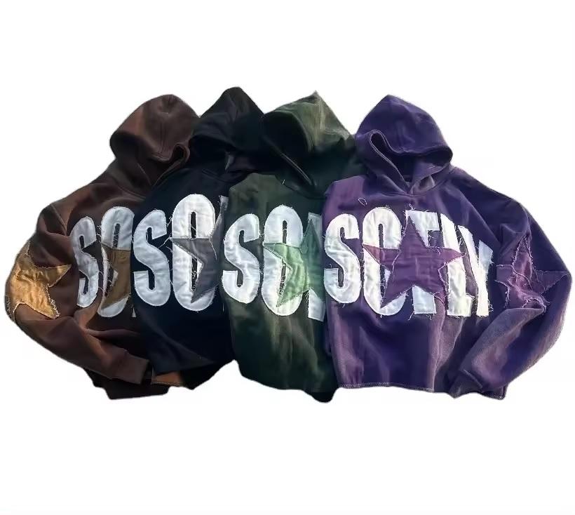 Custom Embroidered Patches Logo High Quality Pullover Sweatshirts Drop Shoulder Fleece French Terry Oversized Hoodies