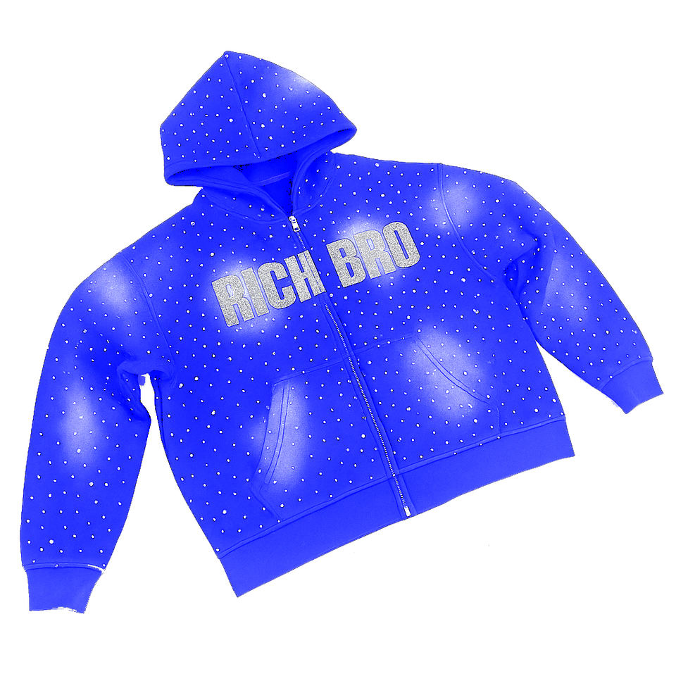 Custom Embroidered Rhinestone Zip Hoodie Heavyweight Winter Streetwear Hip Hop Acid Wash Black 100% Cotton Sweatshirt Designer