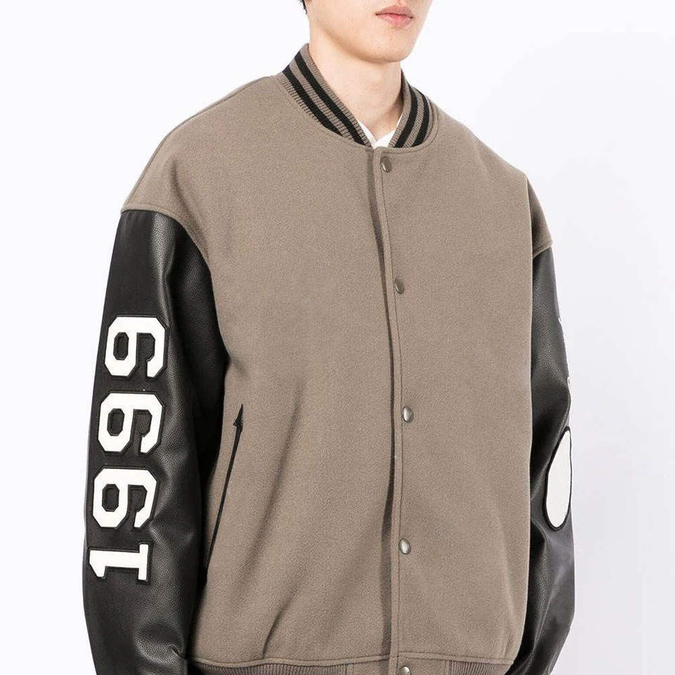 Custom Embroidered Wool Varsity Jacket Leather Sleeves Classic College Letterman Bomber Jacket Supplier