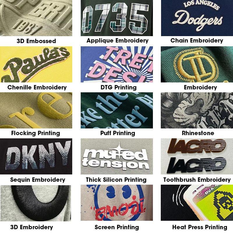 Logo position:Front, back, Left Sleeve, Right Sleeve, lower hem, back neck