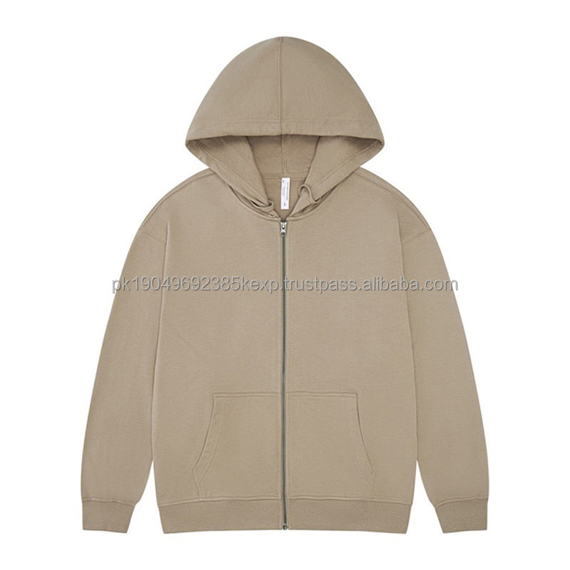 Custom Embroidered french terry hoodie 100% cotton y2k zip up designer zipper drop shoulder heavyweight oversized men hoodie