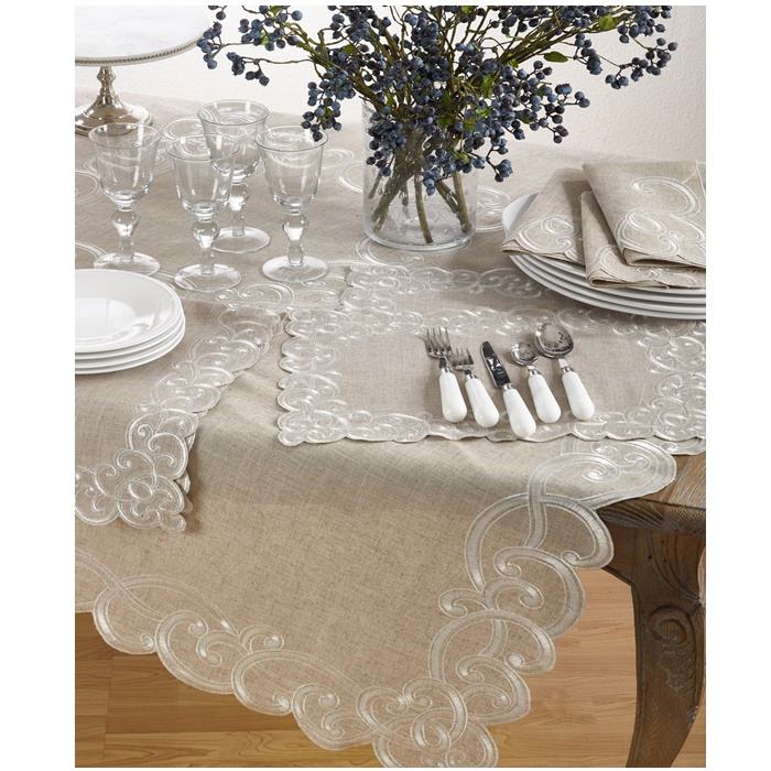 Custom Embroidery Border Tablecloth Luxury Table Cloth High Quality Natural Linen Decorate for Home/Hotel/Restaurant