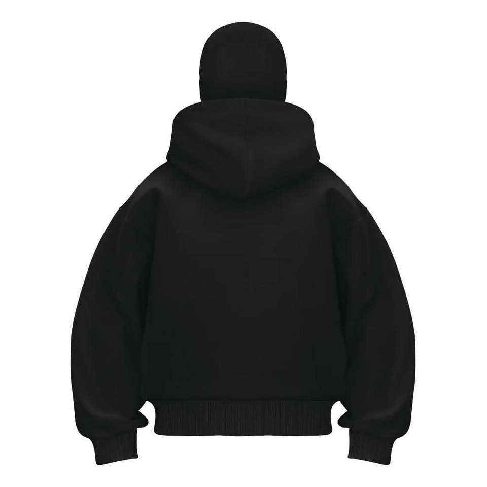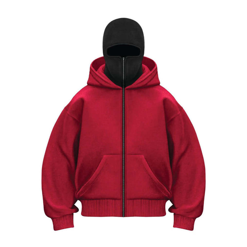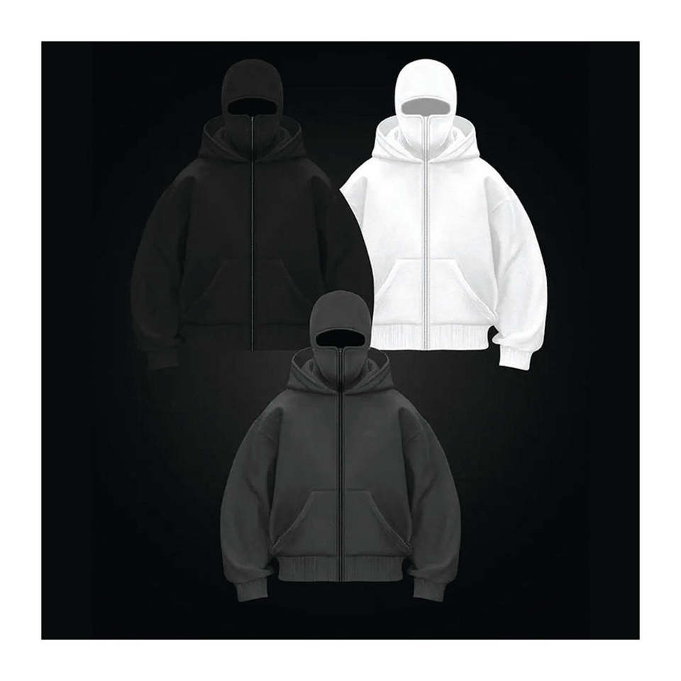 Custom Embroidery Double Hooded Thermal Winter Ninja Double Layer 100% Cotton Pullover Heavyweight Full Zip Balaclava Men