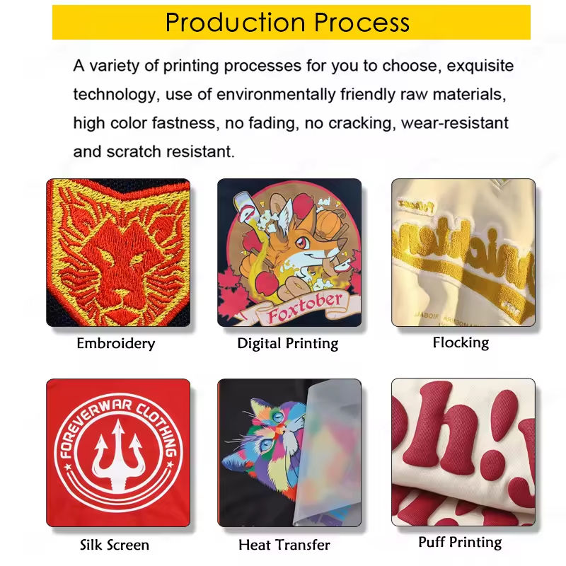 Printing Methods:Discharge Printing, Puff Printing, Heat-Transfer Printing, Digital Printing, Silk Screen Printing