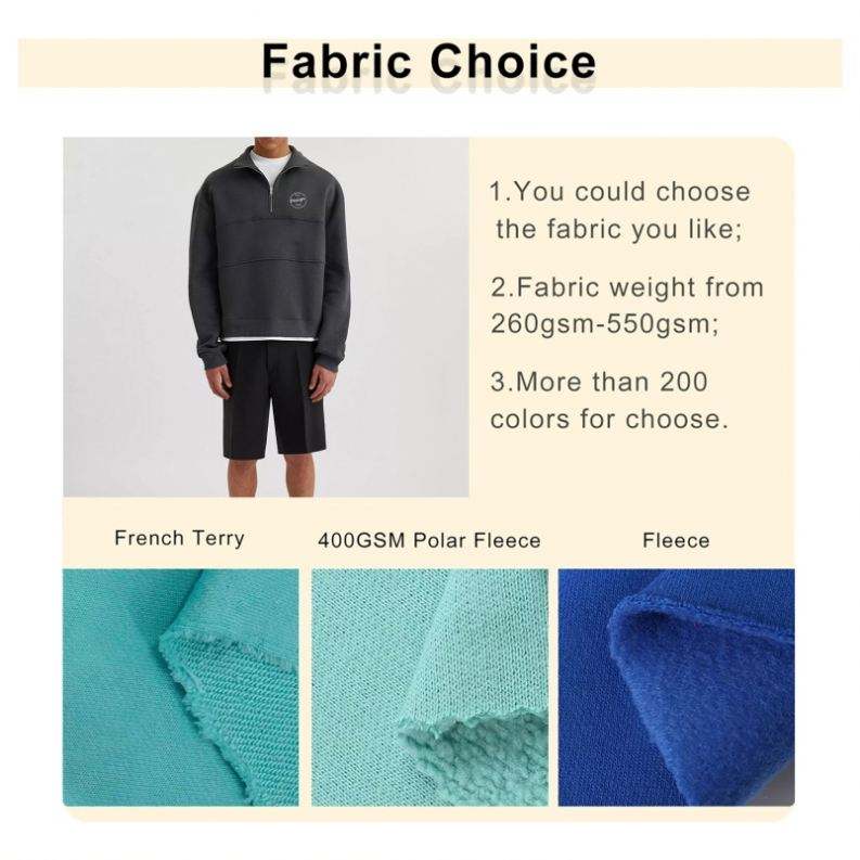 Custom Embroidery Half Zip Hoodie Fleece Heavyweight Oversized Workout Plain Pullover Patchwork Quarter Zip Sweatshirt for Men