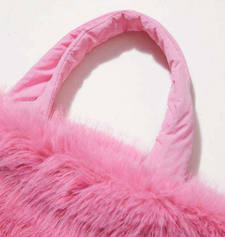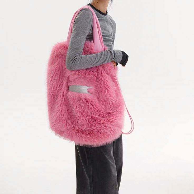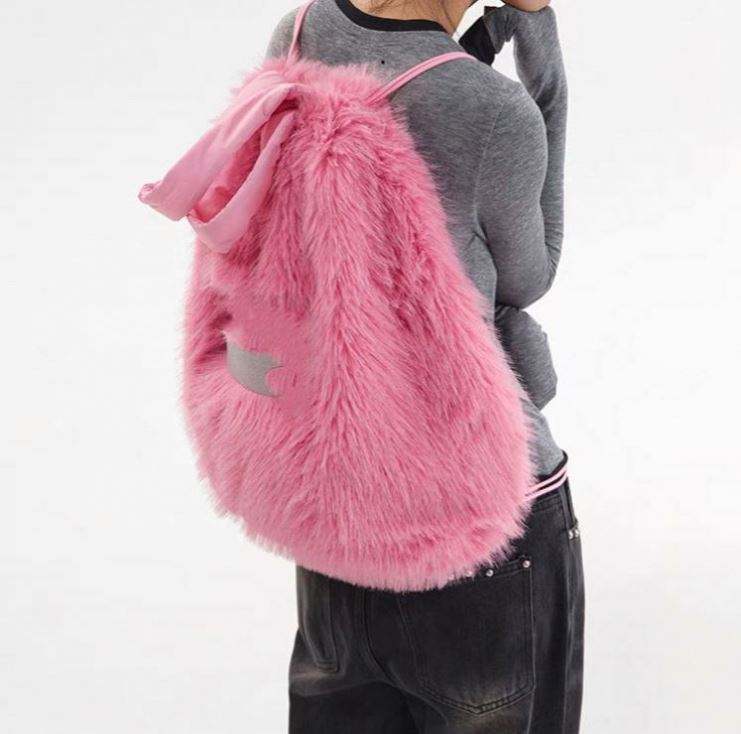 Custom Embroidery Logo Furry Drawstring Bag Fluffy Fleece Plush Drawstring Backpack Faux Fur Shoulder Bag