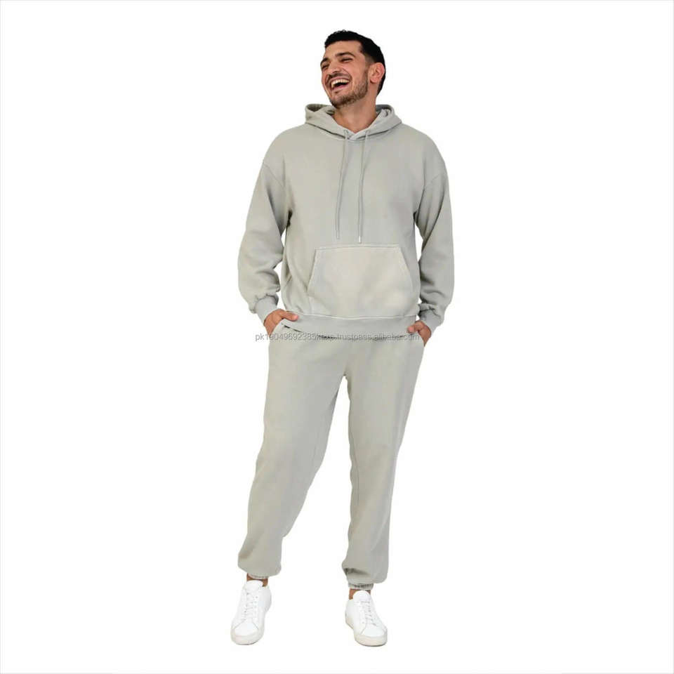 Custom Embroidery Logo Men's Tracksuit New Fashion Heavyweight Fall Winter Two Piece Sets Wash Acid