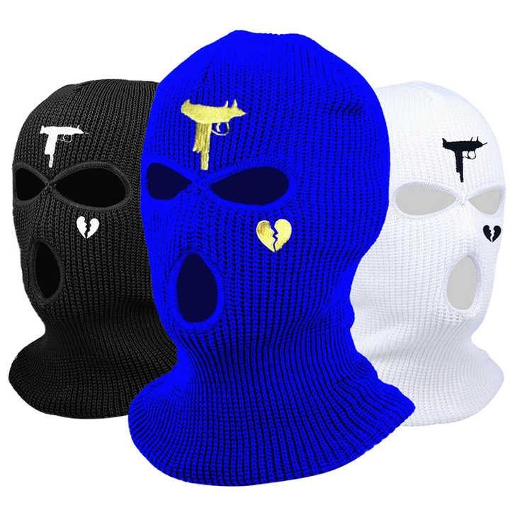 Custom Embroidery Logo Men's Winter Warm Outdoor Ski Mask White Black 3 Holes Neon Balaclava Waterproof Windproof 100% Silk