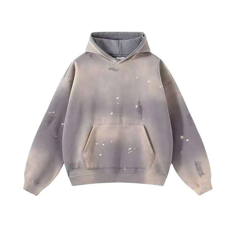 Feature:Zipper Hand Pocket Training Acid Wash Hoodie