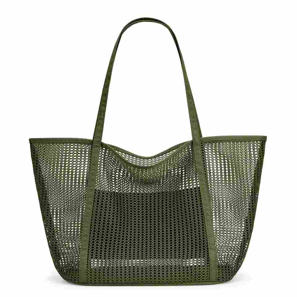 Custom Embroidery Logo Rattan Mesh Beach Bag Handmade Crochet Straw Tote Bag Women