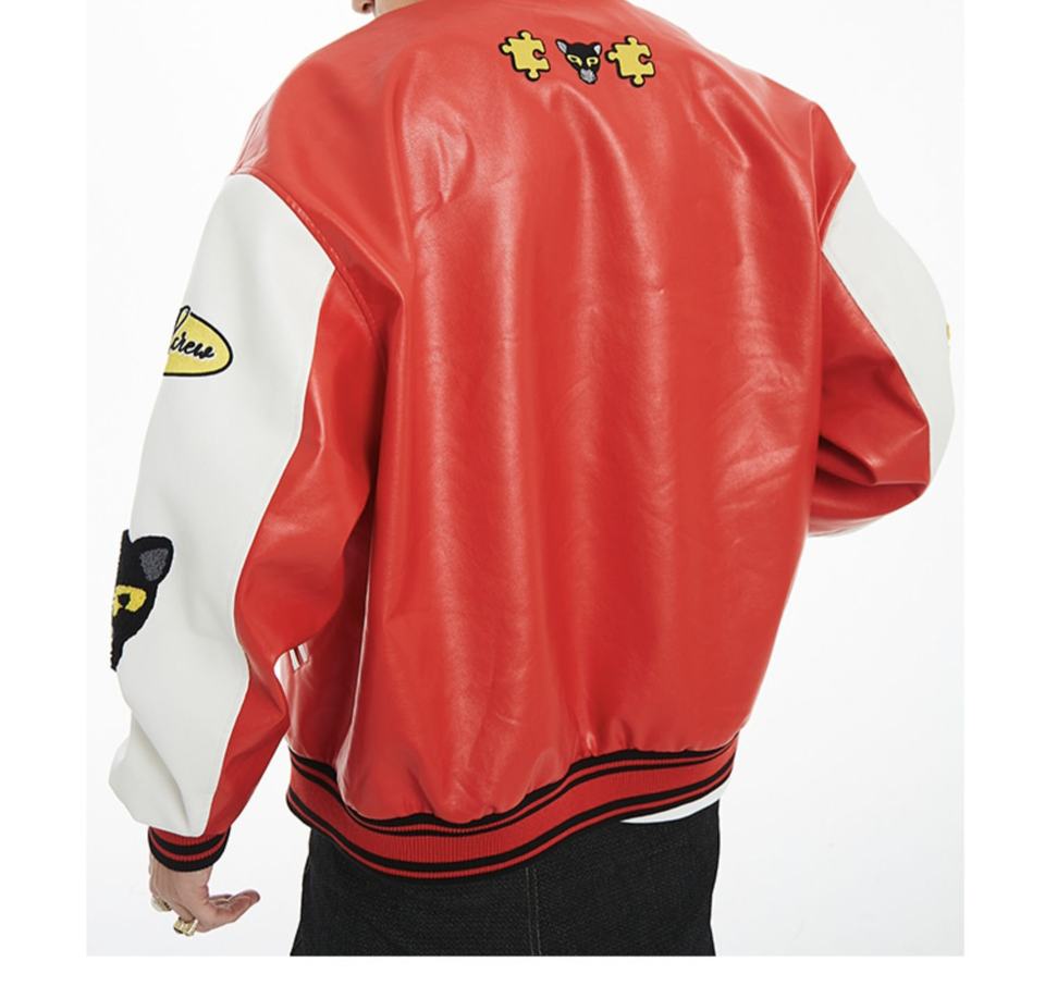 Custom Embroidery Logo Red Color Crop Men Leather Coats Oem Pu Leather Varsity Jacket for Men