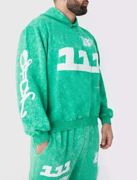 Custom Embroidery Logo Streetwear Acid Washed Tracksuits Acid Wash Distressed Patch Sweatpants And Hoodie jogger Set For Men