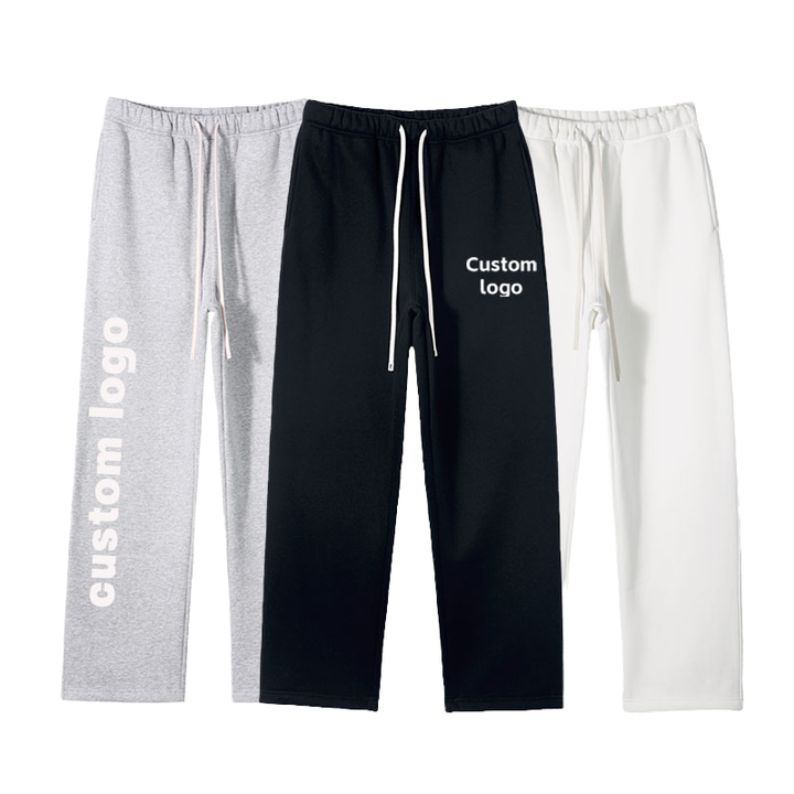 Custom Embroidery Men Women Solid Color Woolen Fleece Lined Mid Waist Baggy Jogger Sweatpants 100% Cotton Wide Leg Casual Flat