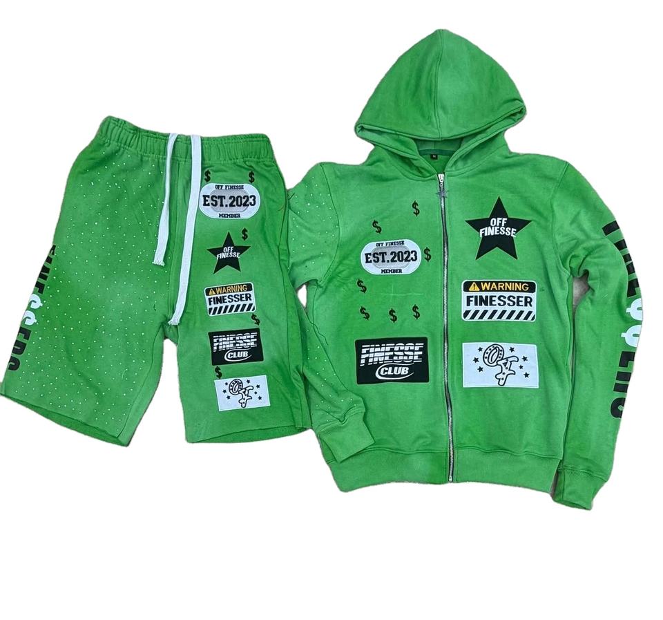 Custom Embroidery Patch Logo Men's High Street Winter 2-Piece Hoodie Shorts Set 100% Cotton Terry Breathable