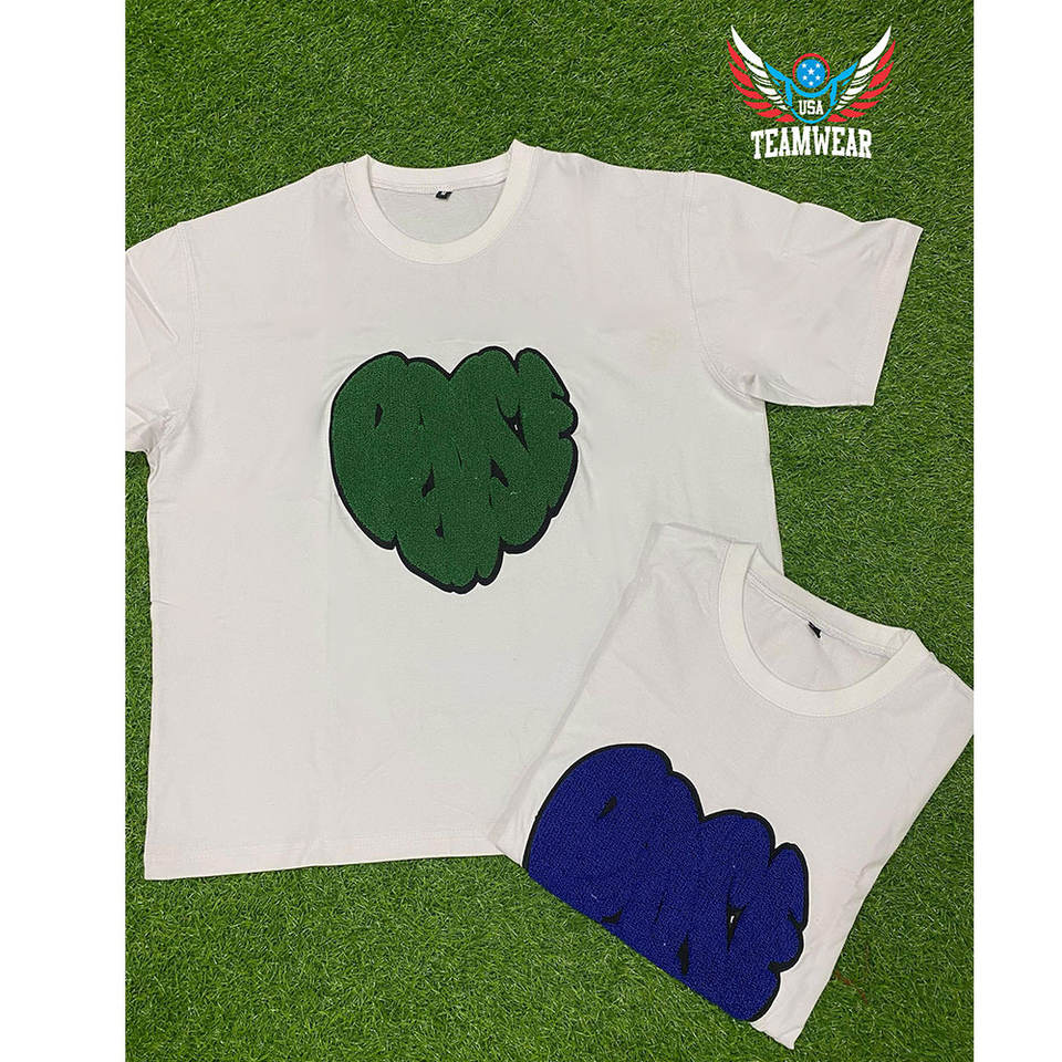 Custom Embroidery Tee Shirt Chenille Embroidered Heavy Cotton Shirt Unisex Tee Cotton Chenille Patch Embroidery T-shirt for men
