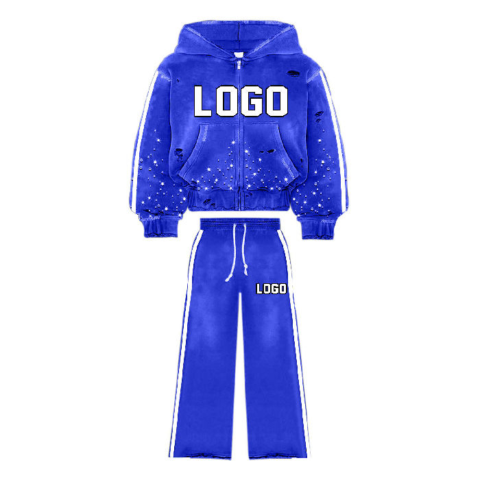 Custom Embroidery printing Oversized Tracksuit & Sweatpants Set Casual 100% Cotton Long Sleeve Hoodie For streetwear fashion