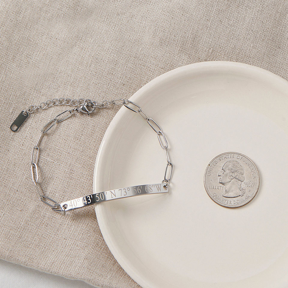 Custom Engrave Bar Friendship Bracelet Long Distance State Bracelet Anniversary Gift Personalized Jewelry for Gift