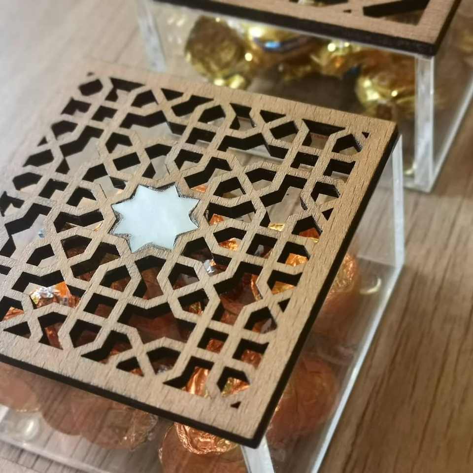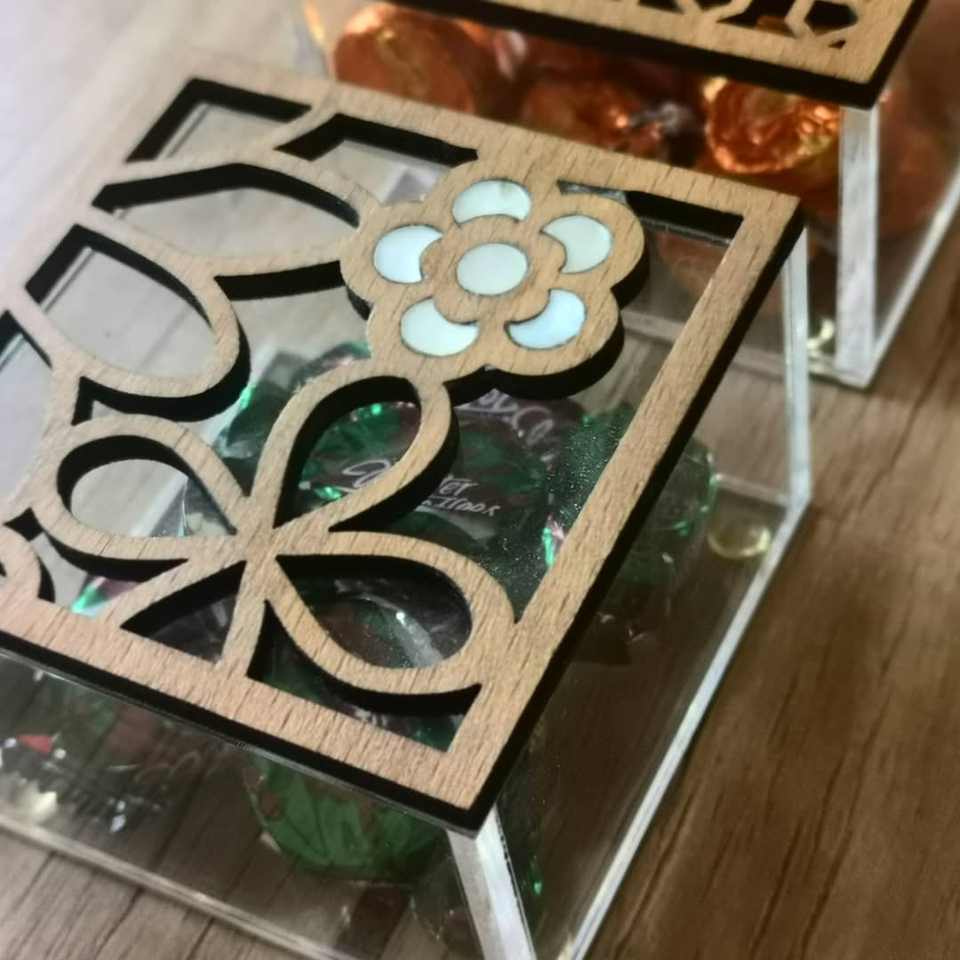 Custom Engraved Acrylic Gift Box with Handmade Mother of Pearl Inlay Top Ideal for Festive Chocolate Dry Fruit & Candy Packaging