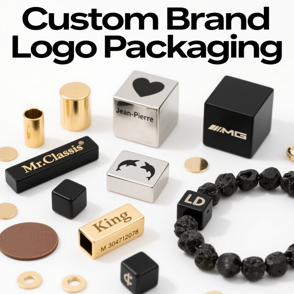 Custom Engraved Logo Hollow 3D Bar Cube Charms Pendant Stainless Steel Big Hole Cuboid Beads for Jewelry Making Finding