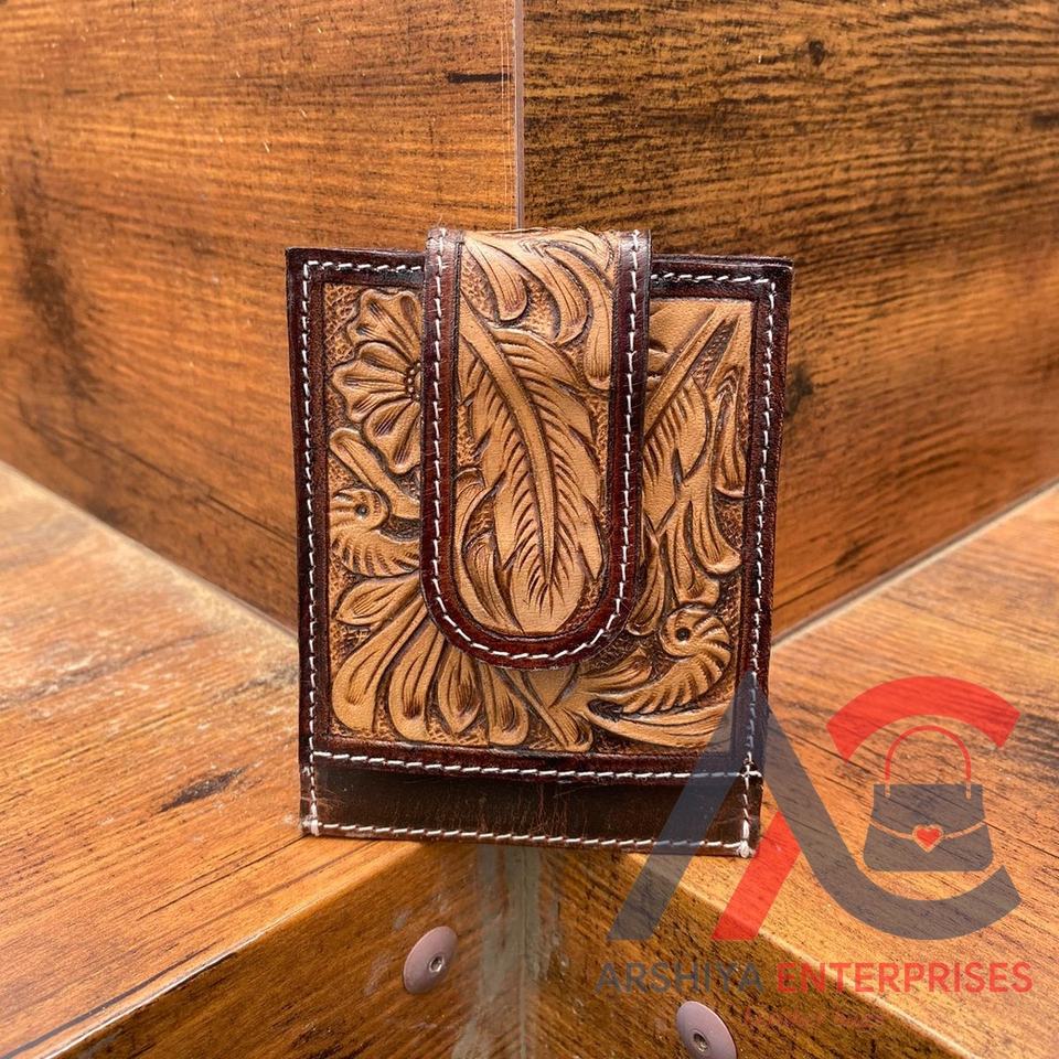 Type:Tooled Leather Money Clip & ATM Card Holder
