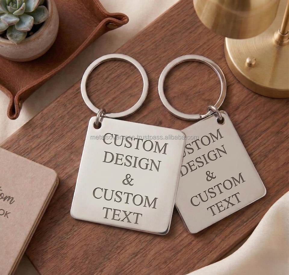 Custom Engraved Square Metal Keychain Personalized Key Holder with Custom Text and Logo Gift Item