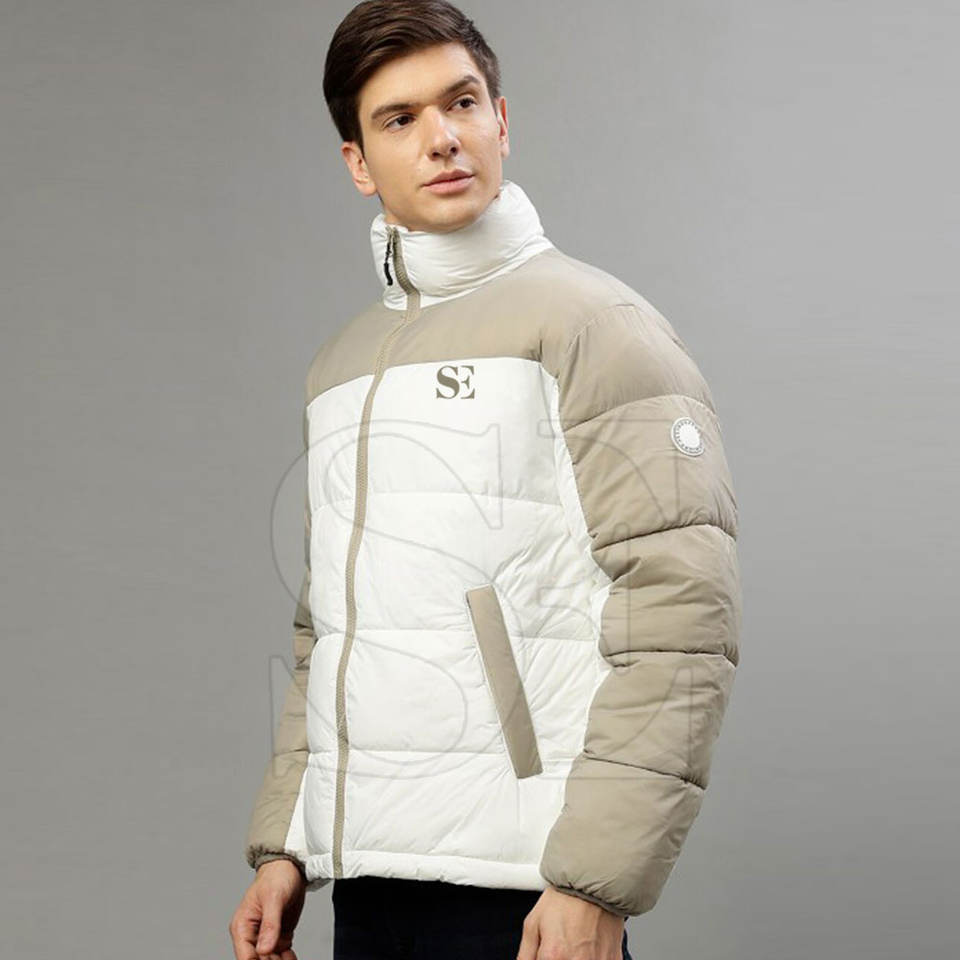 OEM Wholesale High Quality European Designer Puffer Jacket for Men Winter Bubble Down Padding with Hooded Collar Canvas Fabric