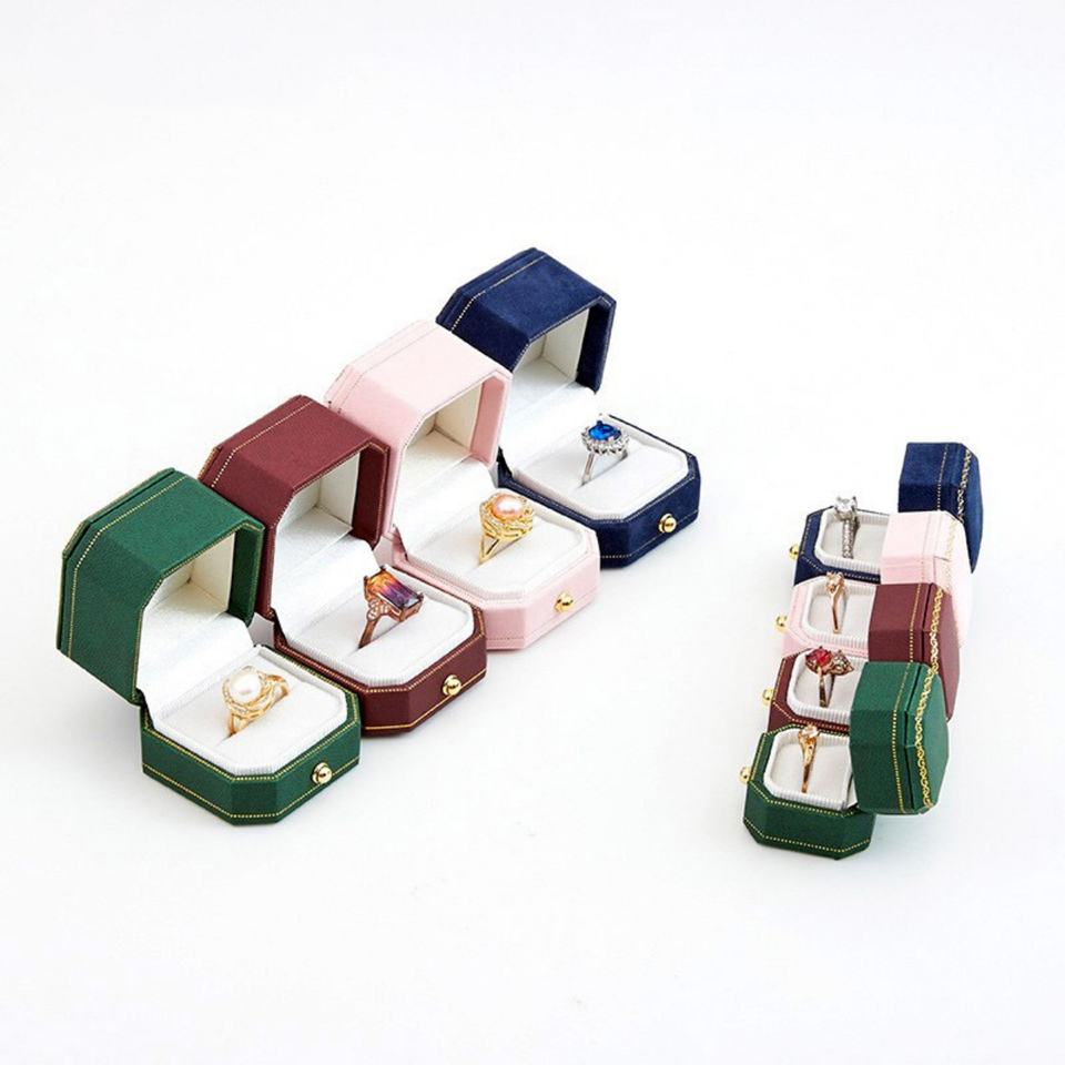 Custom European Octagonal Gold Border Buckle Jewelry Packaging Edge Ring Box Storage Jewelry Boxes