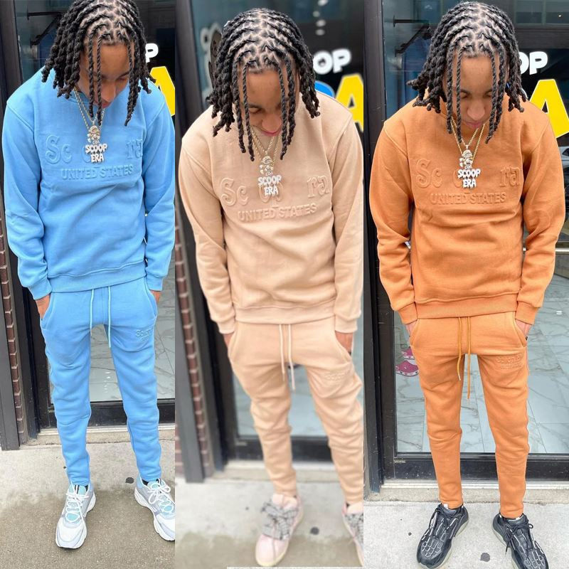 Custom Expu Training Embroidery Tracksuits for Men Slim Fit 100% Cotton Cargo Sweat Stacked Sweatpants and Hoodie Sweatsuit