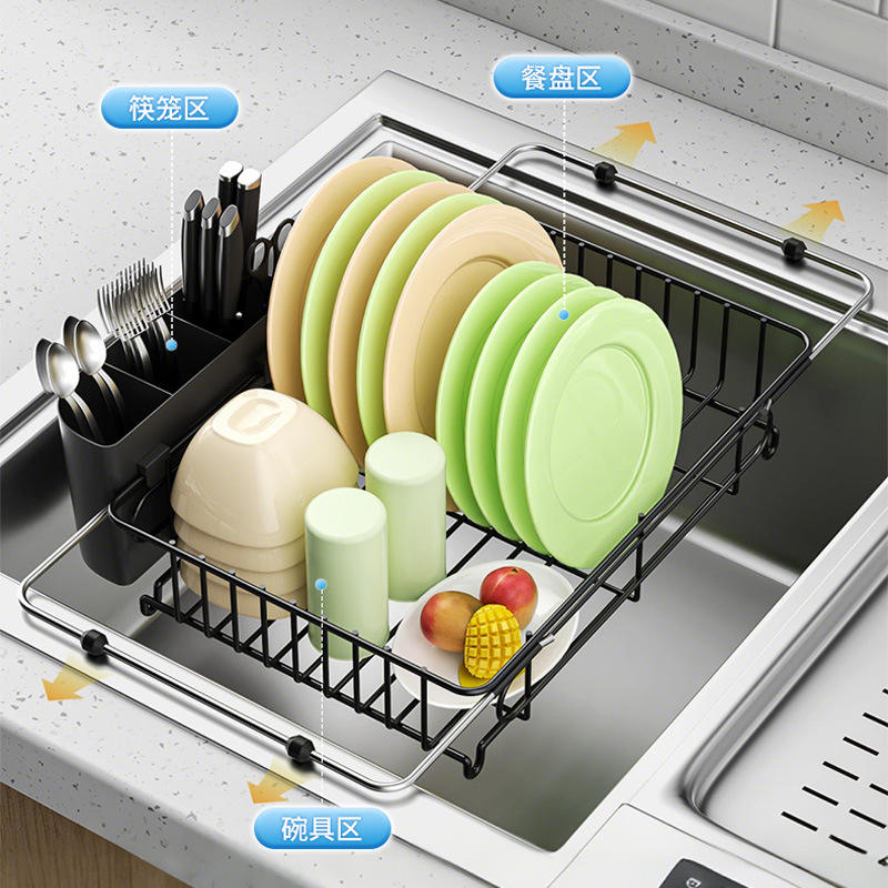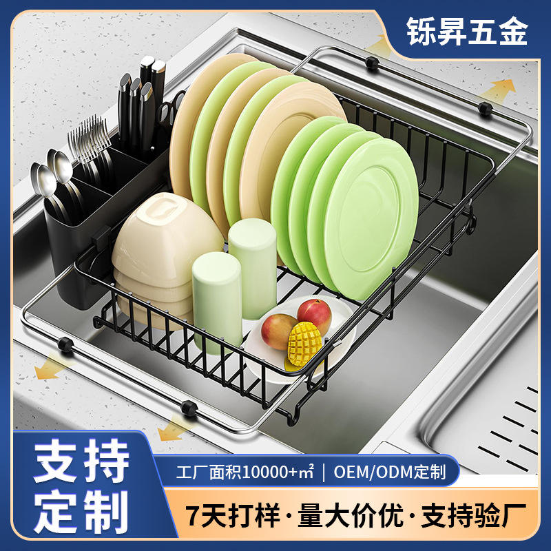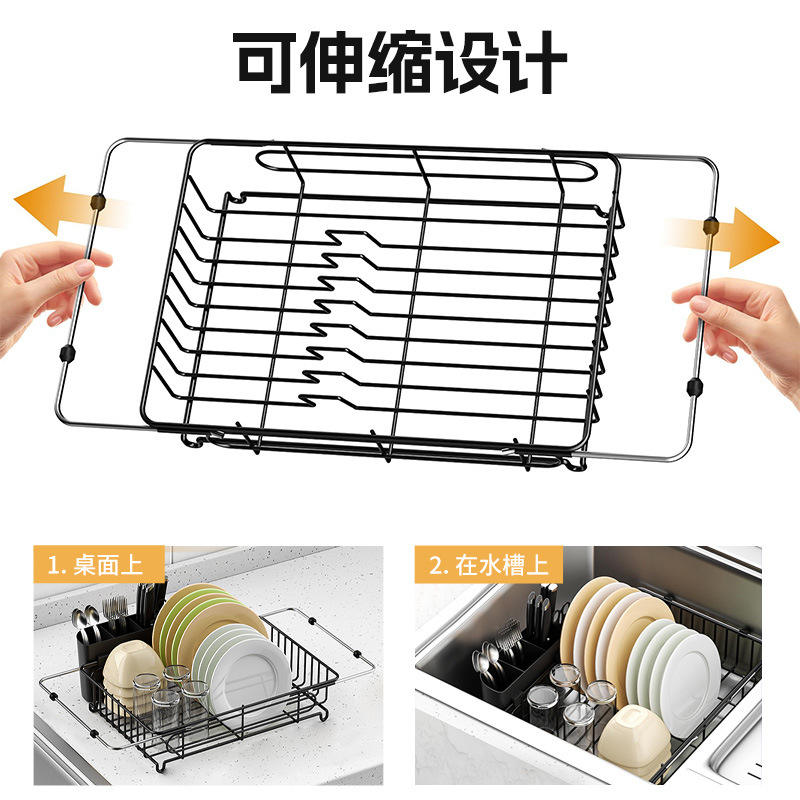 Custom Extendable Sink Dish Rack With Tray Adjustable Square Draining Rack For Kitchen Countertop