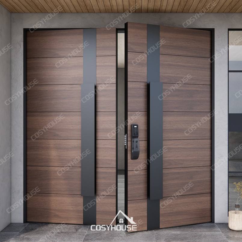 Custom Exterior Wooden Double Front Doors Solid Timber Waterproof Soundproof Entry Doors for Villas Houses Apartments Hotels