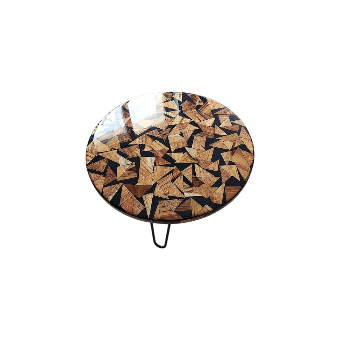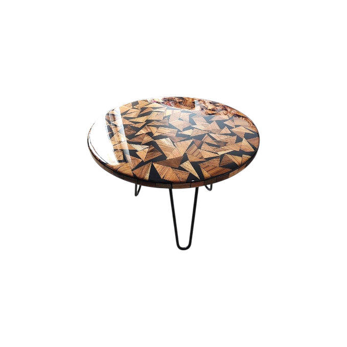 Custom FASHION CRAFT 52-Inch Olive Wood Epoxy Resin Dining Table Live Edge Clear Resin Top Luxury Handmade Modern Outdoor