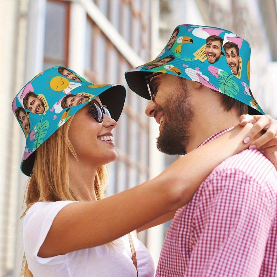 Custom Face Bucket Hat Personalized Photo Hat Design Your Own Fisherman Cap Funny Beach Hat for Men and Women One Piece Custom