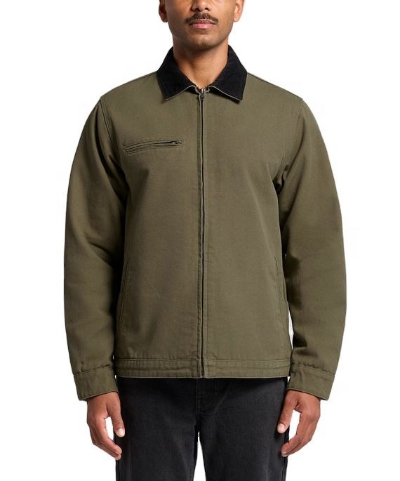 Custom Factory Distress Wash Heavy Duck Canvas Fireman Clasp Work Jacket for Men Vintage Embroidery Loose Fit Denim for Spring