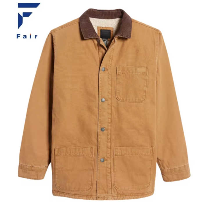 Custom Factory Fleece Cotton Duck Canvas Work Jacket Worker Workwear Sherpa Lined Work Jacket Cotton Canvas Chore Jacket