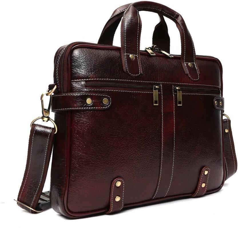 Custom Factory High Quality Lightweight Genuine Leather Laptop Messenger Briefcase Satchel Bag 15.6 Inch Unisex Customized Color