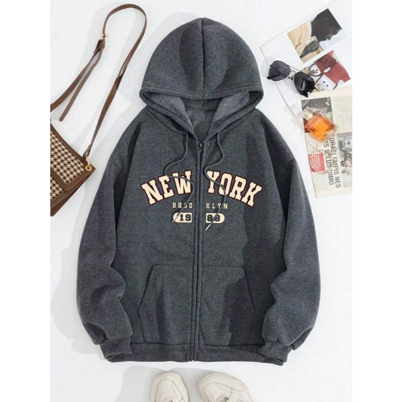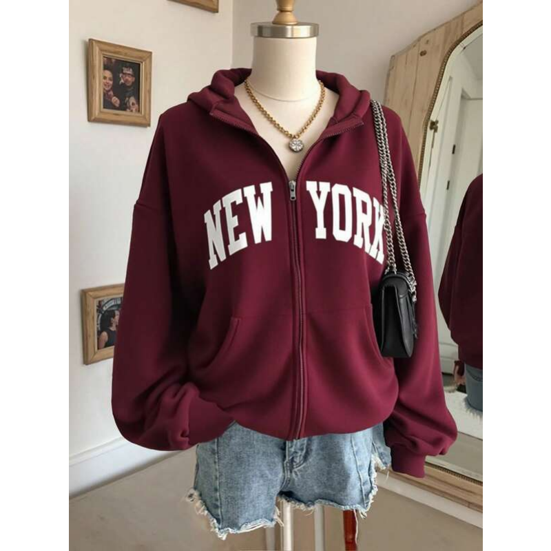 Custom Factory Winter Knitted Oversized Y2K Street Casual Style Polyester/Cotton Unisex Full Zip Puff Print Pattern Rhinestone