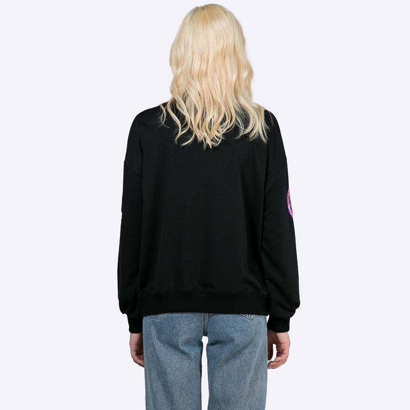 Custom Fall Women Pullovers Sweatshirt Black Round Neck Long Sleeve Sequin Embroidered Pullover Wholesale