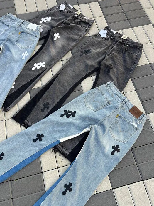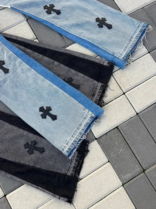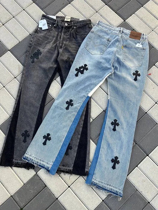 Custom Fashion Cross Design Flare Denim Pants for Men High Quality Casual Mid Waist Breathable Woven Jeans