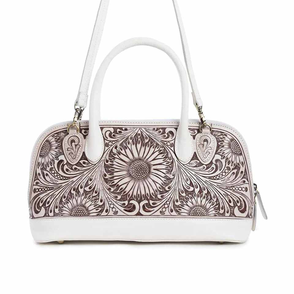 Custom Fashion Women's Retro Leather Tooled Handbag Lightweight Shoulder Bag Unique Bohemian Pattern Vintage Style Purse Set