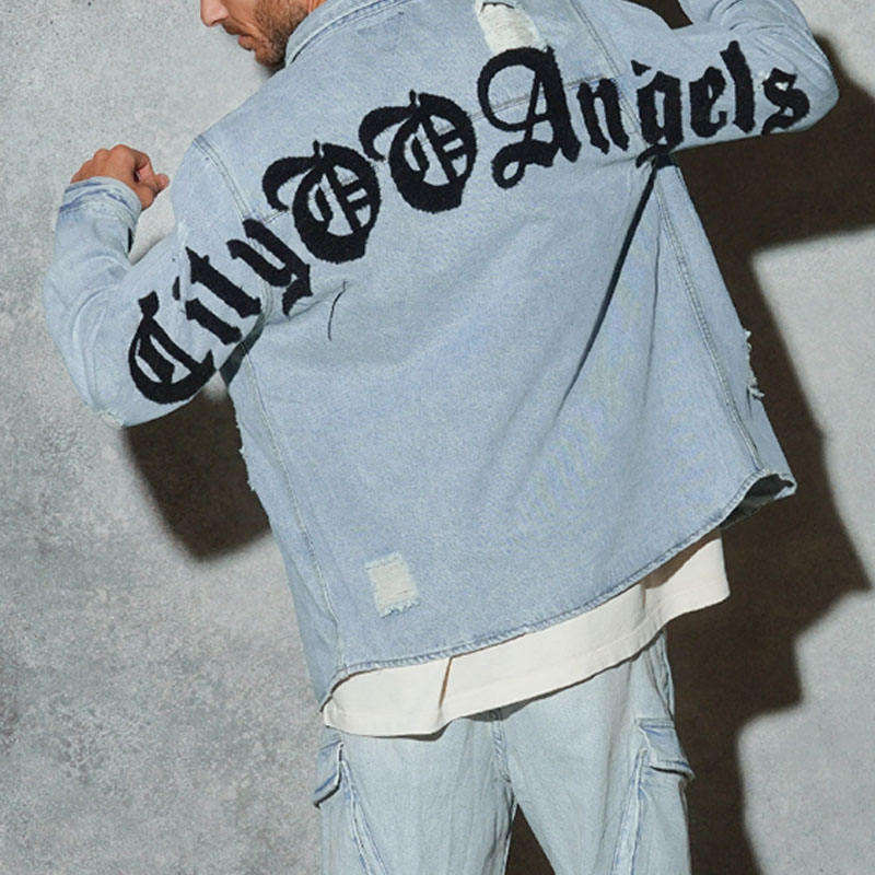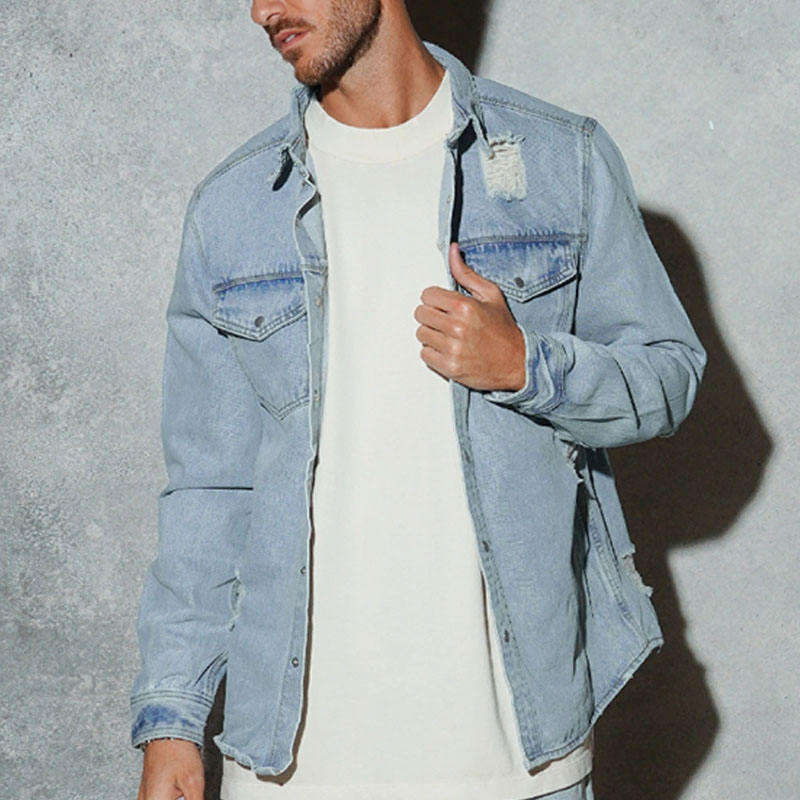 Custom Fashion Mens Denim Jacket Embroidered Designer Jeans Jacket OEM