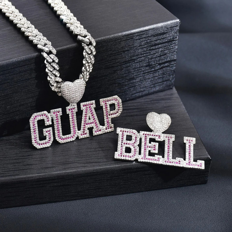 Custom Fashion Necklace Iced Moissanite Diamond Name Plate Trendy Gold Plated Moissanite English Stitching Letters Pendant