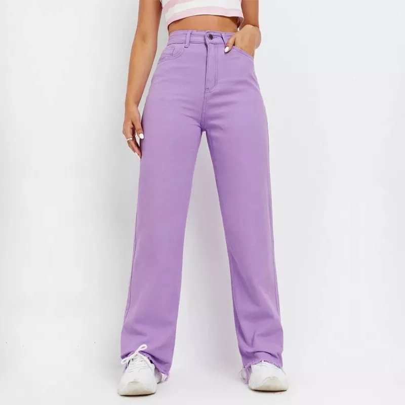 Custom Fashion Solid Color Leg Tassel High Waist Street Wear Zipper Fly Ladies Jeans